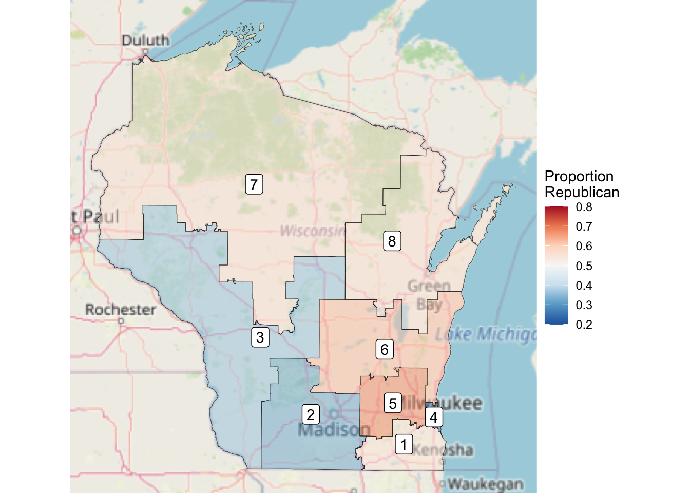 However, we are only interested in the eight congressional districts in Wisconsin.